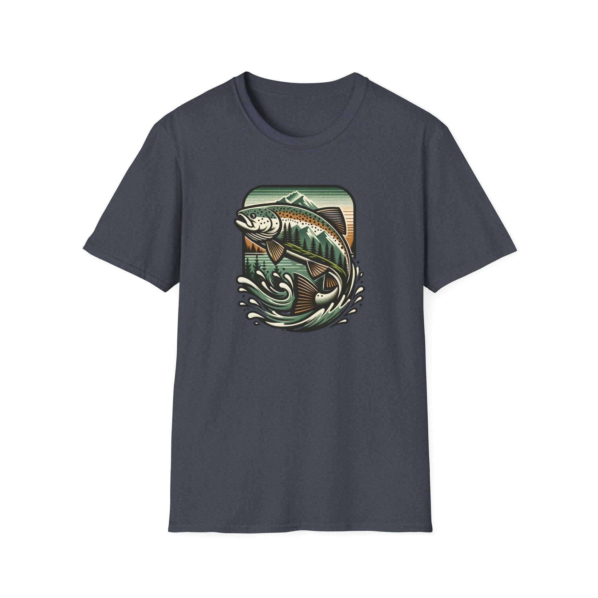 Meet your new go-to fishing shirt the Wildridge Supply Co. “Streamside Trout” tee. Designed for anglers who find peace wading into cold rivers, this shirt features a bold, retro-style trout leaping from the water with a scenic mountain backdrop. Perfect for those quiet mornings spent casting lines, sharing laughs, and chasing the next great catch.