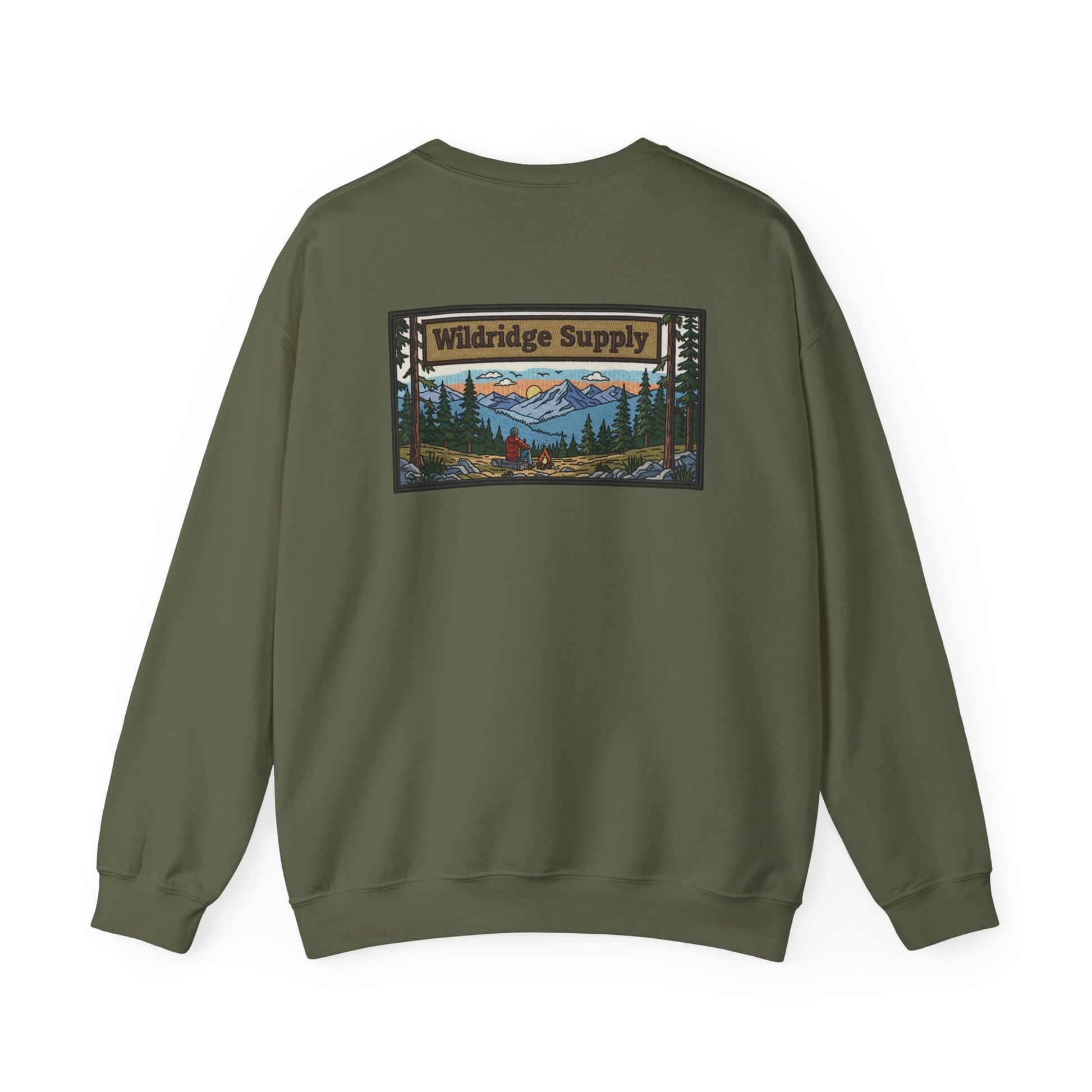 Wildridge Supply Co. Mountain Campfire Patch Sweatshirt – Outdoor Hiking & Camping Graphic Crewneck